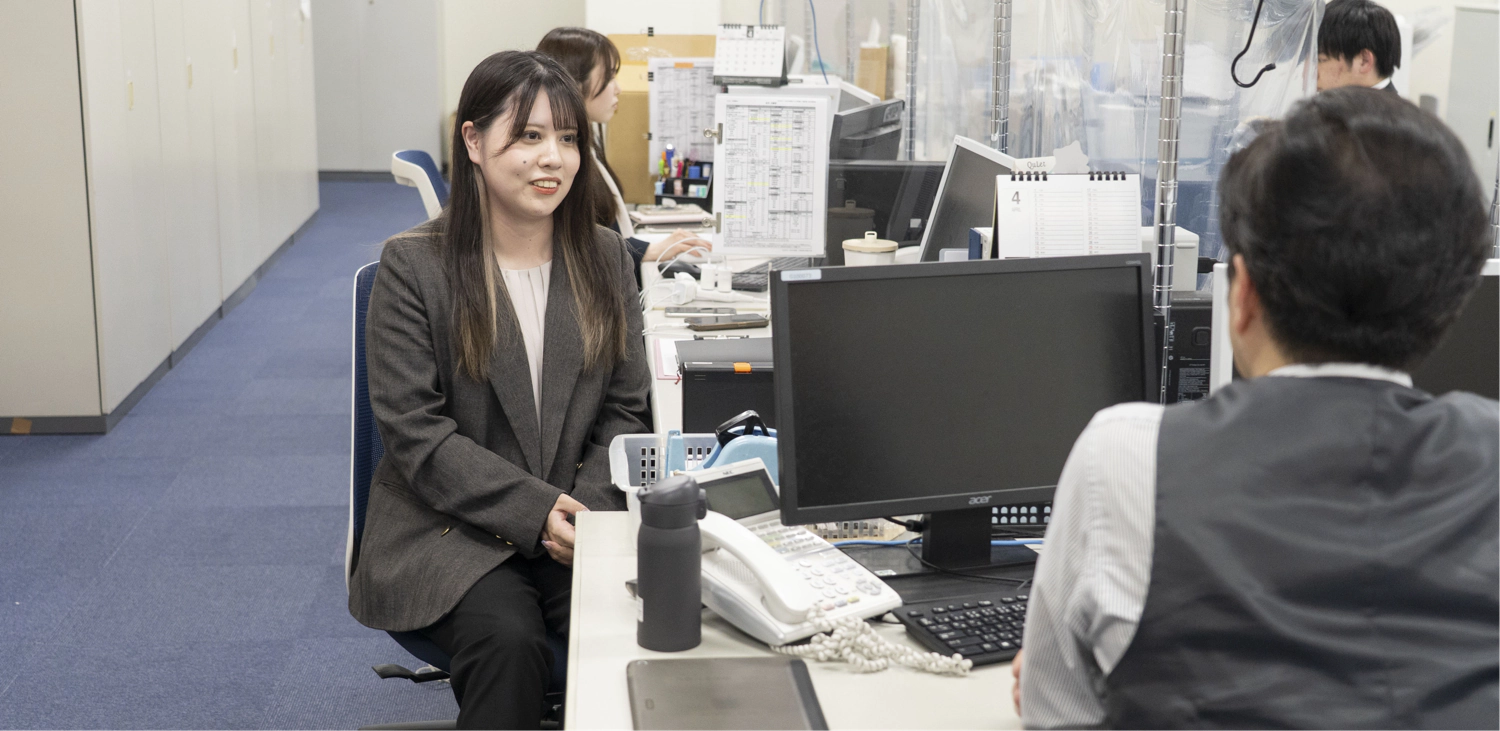 一番身についたのは、度胸とコミュニケーション力だと思います。入社してすぐの頃は、飛び込み営業って本当に緊張して、何を話そうか頭が真っ白になることもありました。でも、何度も挑戦していくうちに、まずは笑顔で挨拶して、雑談から入ればいいんだって感覚がつかめてきて。今では初対面の方とも自然に話せるようになりました。それに加えて、調整力も大きく鍛えられていると感じます。営業の仕事は自分だけで完結するものではなく、加盟店の要望を社内の各部署につなげたり、情報をお店にわかりやすく伝えたりすることが多いんです。たとえば「この日にキャンペーンを実施したい」と依頼を受けたら、関連部署と連携してスケジュールや内容を整えていく必要があります。間に立って調整する中で、双方が納得できる落としどころを見つける力が少しずつ身についてきました。